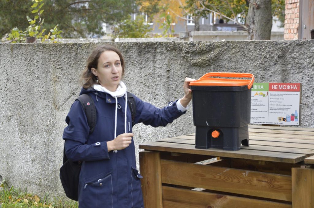 Якщо хотіти, можна спокійно вдома компостувати. Я особисто так роблю: живу в квартирі та компостую органічні відходи. Відповідно в мене сміття значно менше через це, бо більша половина нашого сміття — це тільки органіка. Раніше ми її батькам чоловіка відвозили за місто, де вони живуть в своєму будинку. Тепер відвожу сюди (в компостер на території ЛНТУ, — ред.). Все інше сортуємо: папір, метал, скло. Я стараюся обирати ці матеріали, бо їх найлегше здати у Луцьку на переробку.
