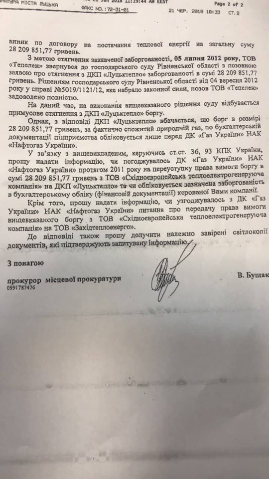 А ще із рахунків «Луцьктепла» примусово списали 5,2 мільйони гривень на користь «Тепелену». Решту, 23 мільйони, поступово виплачують і досі в рамках мирової угоди, яку уклали у жовтні 2018 року.