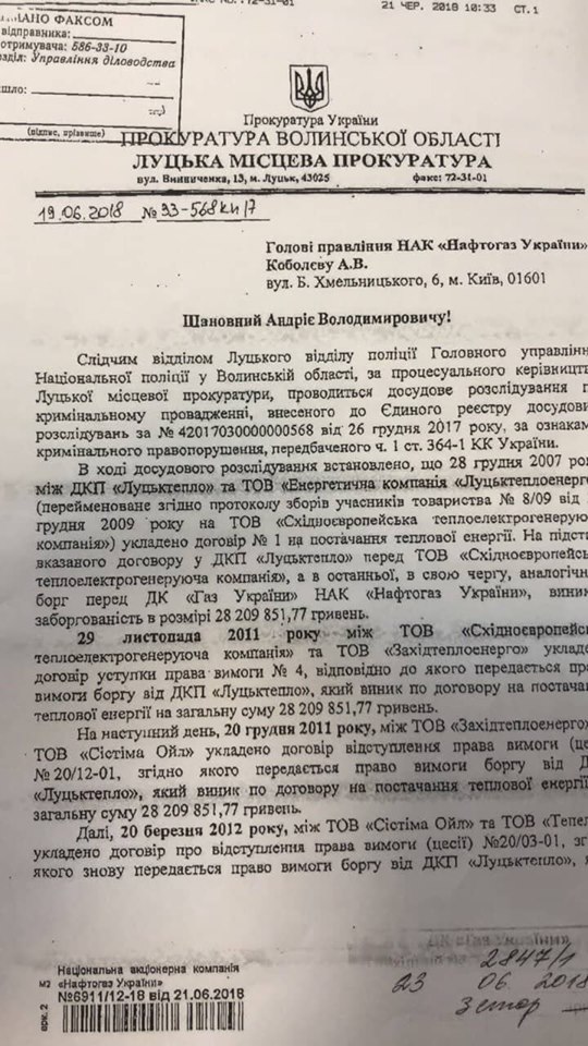 А 20 грудня того ж року вже ця компанія передала право вимоги ТОВ «Сістіма Ойл» також із групи «Континіум». 20 березня 2012 року «Сістіма Ойл» нарешті передає борг «Тепелену». Саме ця компанія власне і звернулася до суду, щоб вимагати стягнення боргу із «Луцьктепла». 4 вересня 2012-го господарський суд Рівненської області задовольнив позов повністю.