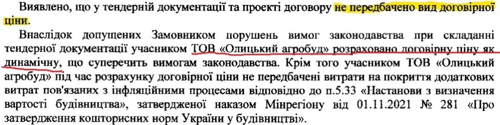 До речі, очікувана ціна у скасованому тендері була на понад 300 тисяч гривень вищою, аніж у наступному, з виправленим видом ціни.