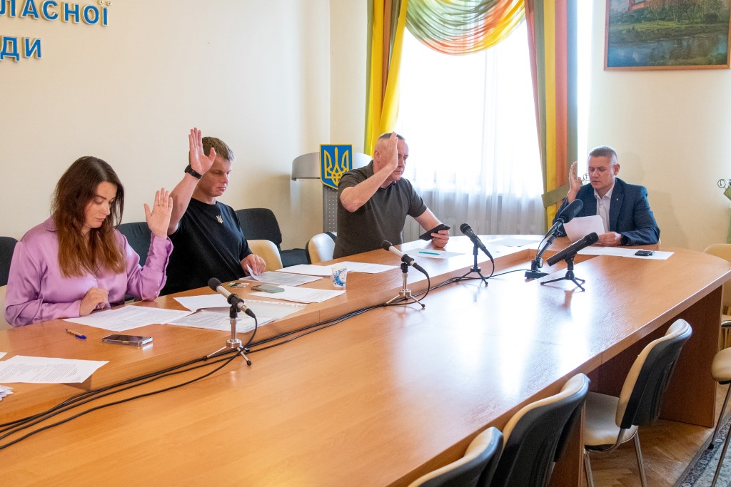 Одне із засідань конкурсної комісії облради, де фактично перепризначили директорів трьох закладів. Перший заступник голови Волинської облради Юрій Поліщук (крайній справа) каже, що у низькій конкуренції винні фінансові труднощі та повномасштабна війна. Фото Волинської облради.