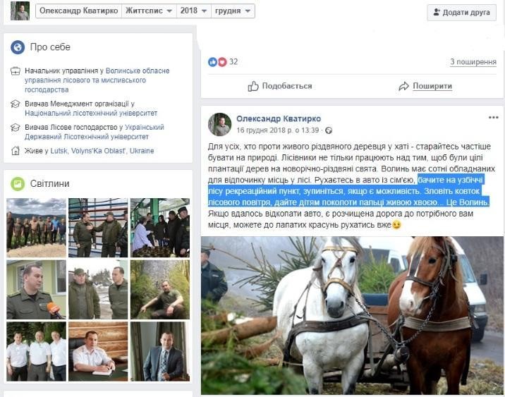 — Бачите на узбіччі лісу рекреаційний пункт, зупиніться… Зловіть ковток лісового повітря, — ділиться порадами начальник Кватирко, активний дописувач у Фейсбуці.