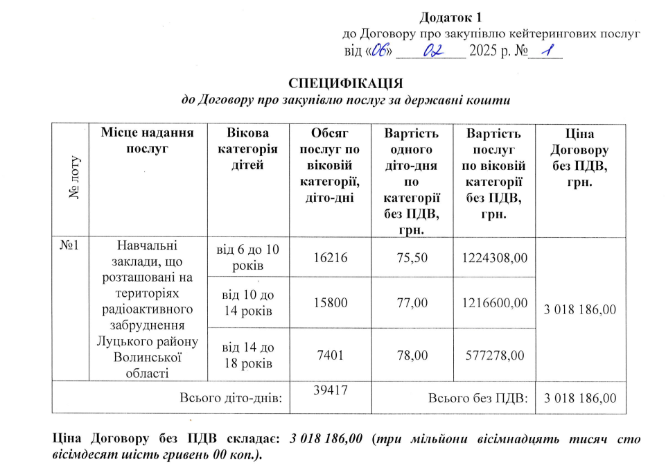 Ця фірма у 2023 році уже харчувала дітей з Волині, які мешкають на територіях радіоактивного забруднення через аварію на ЧАЕС. Тоді, як і цього року, вона була єдиним учасником тендеру, а ще Держаудитслужба мала до тієї закупівлі низку претензій.