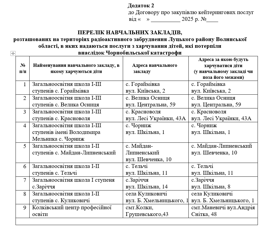 Управління соціальної та ветеранської політики Луцької районної державної адміністрації Волинської області замовило послуги кейтерингу для учнів-чорнобильців за понад 10 мільйонів гривень, а після підписання договору раптом різко зменшило суму закупівлі до 3 мільйонів.