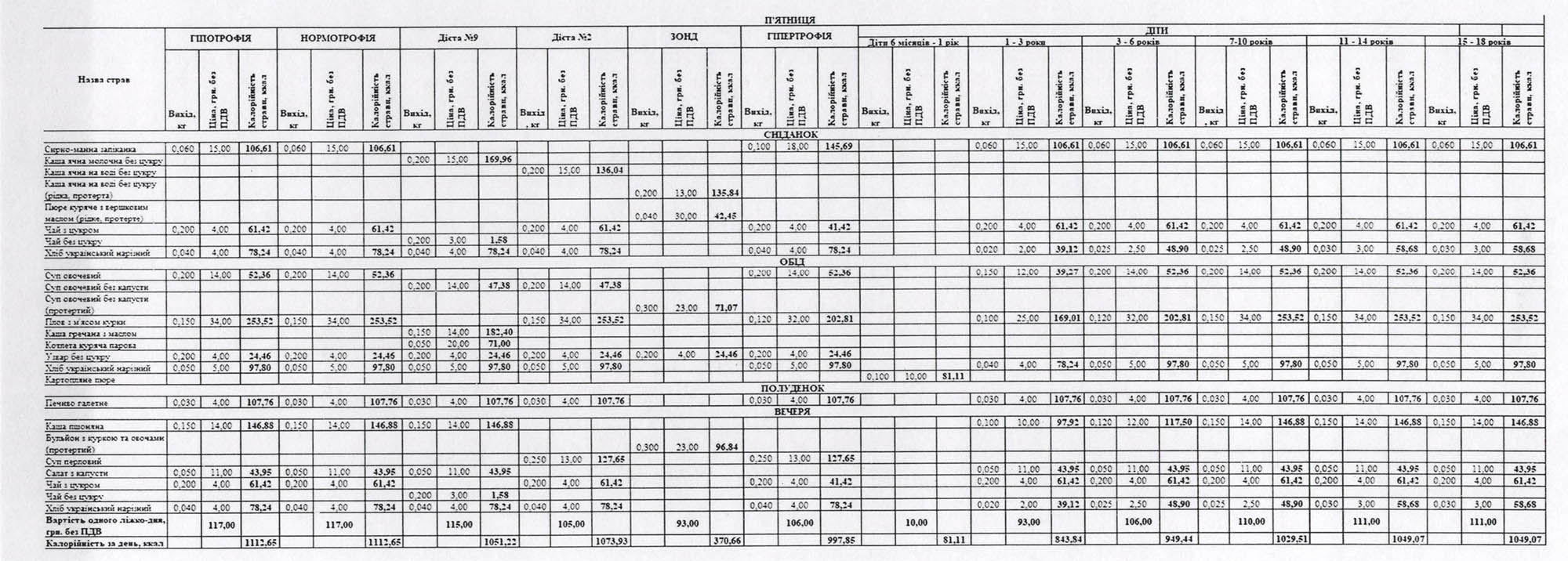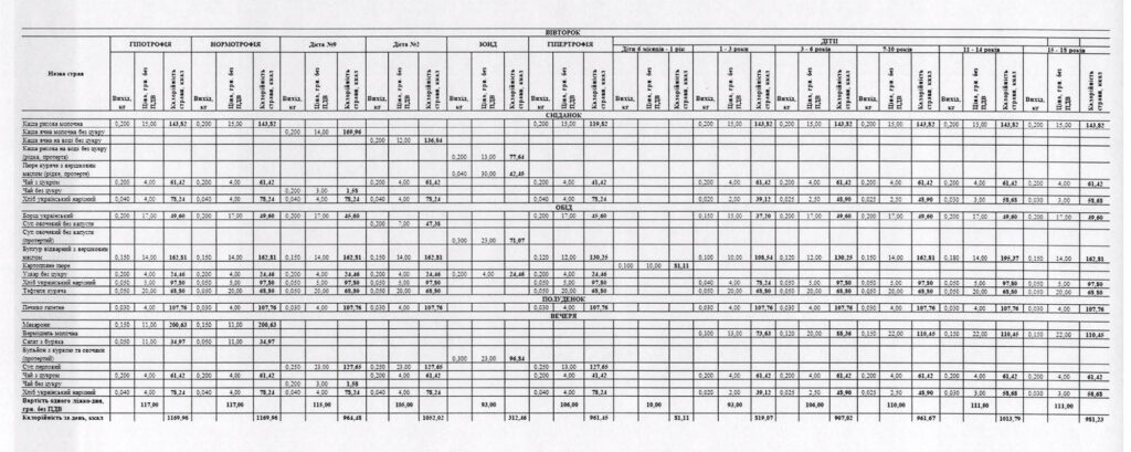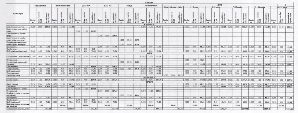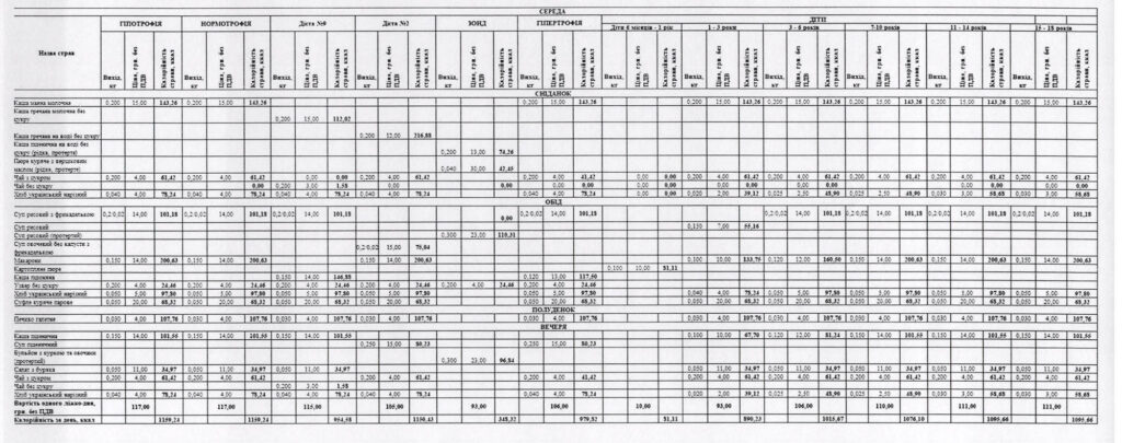 Примірне меню для пацієнтів – на зображеннях нижче.