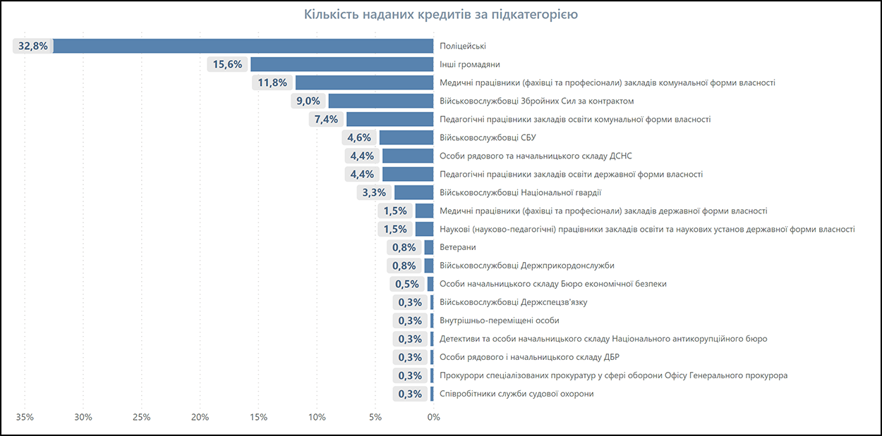 Найбільша частка серед отримувачів кредитів єОселі на Волині – поліцейські. Також серед найбільших категорій – медики, військові-контрактники, педагоги та силовики.