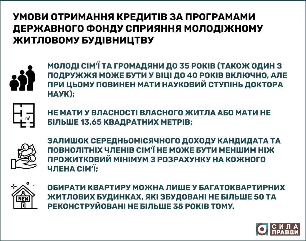 За інформацією Волинського регіонального управління Держмолодьжитла право на отримання кредитів за програмами Державного фонду сприяння молодіжному житловому будівництву мають молоді сім’ї та громадяни до 35 або до 40 років, які не мають власного житла.