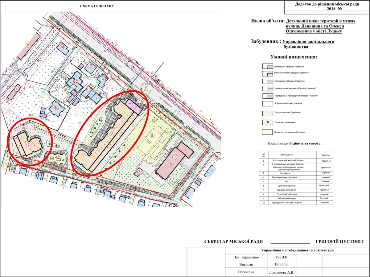 Висотне будівництво аж ніяк не вписувалося в генплан міста. Тому наприкінці вересня депутати дозволили розробити проект детального плану території в межах вулиць Даньшина та Олекси Ошуркевича, який мав би передбачати висотну забудову.
