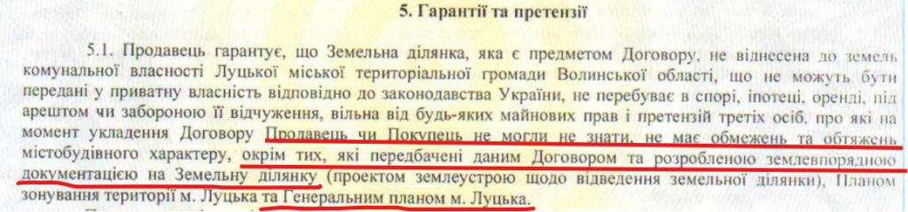 До слова, у договорі купівлі-продажу землі, який підписали Луцький міський голова Ігор Поліщук та новий власник землі Сергій Педич, чітко зазначені містобудівні обмеження, в тому числі передбачені генеральним планом.