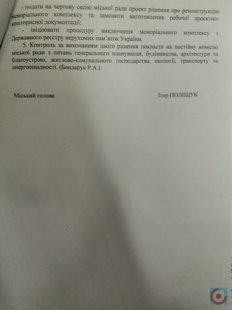 Окрім реконструкції меморіалу, в другому проєкті рішення журналісти пропонують депутатам завершити процедури перейменування чотирьох вулиць (Боженка, Говорова, Нікішева та Федорова), які розпочалися раніше, та активізувати роботу спеціальної комісії для декомунізації і впорядкування інших назв вулиць міста.