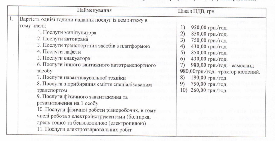 Новим документом встановлена така вартість послуг різних видів техніки: