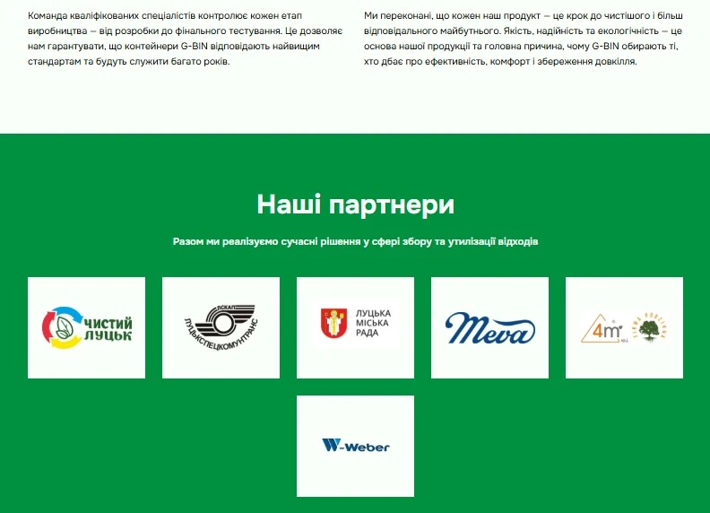 На сайті з однойменною назвою рекламують виробництво сучасних контейнерів для відходів, а в списку партнерів виробника є Луцька міська рада та КП «Луцькспецкомунтранс».