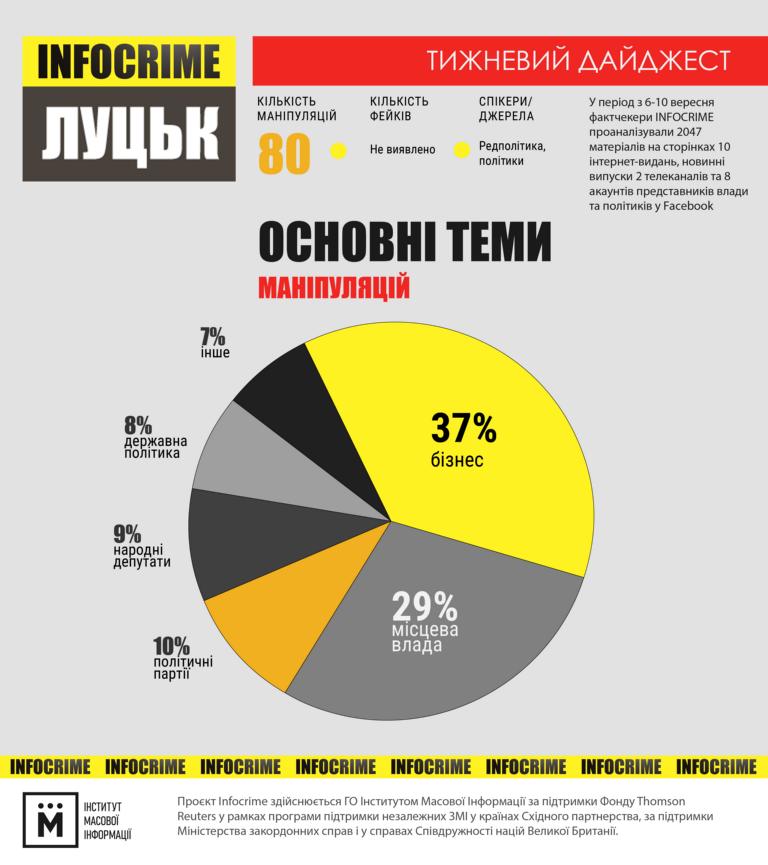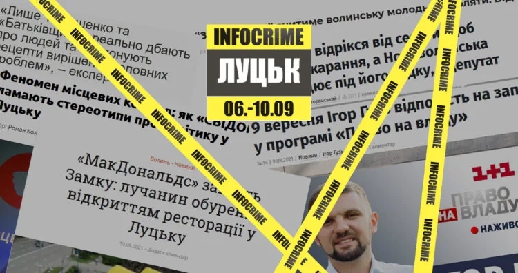 Такий результат щотижневого моніторингу інформаційного простору командою проєкту Infocrime Lutsk за підтримки британського фонду Thompson Reuters, у партнерстві з Інститутом масової інформації.