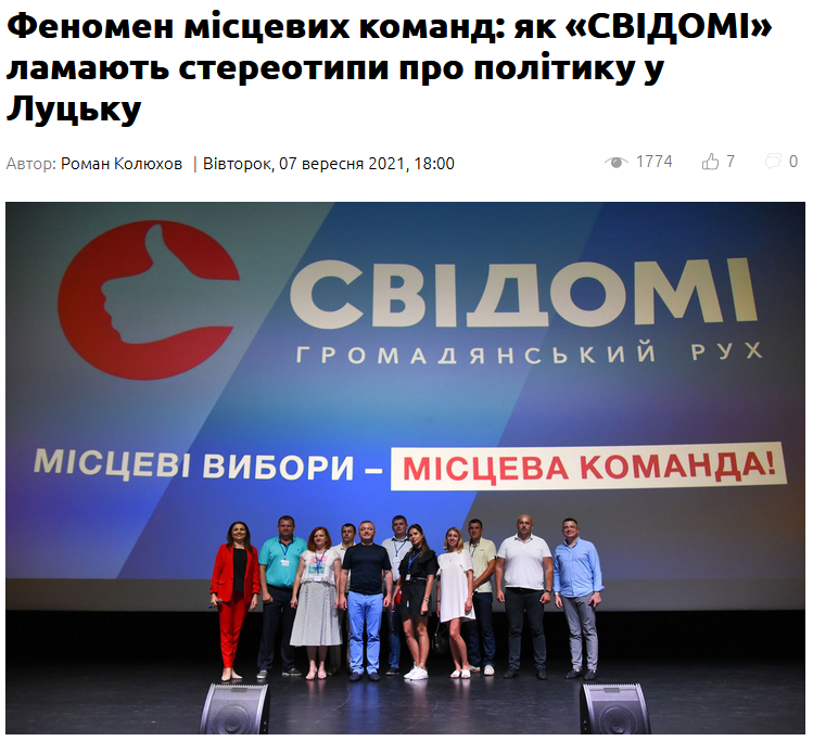 На сайті «Конкурент» та «ВолиньPost» опублікували два тексти із однаковими заголовками «Феномен місцевих команд: як «СВІДОМІ» ламають стереотипи про політику у Луцьку», що «піарить» політичну партію «Громадянський рух «Свідомі». При цьому матеріал не позначений як політична реклама.