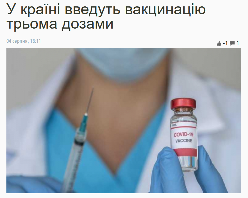У заголовку новини «У країні введуть вакцинацію трьома дозами» на сайті «Волинь24» є маніпуляція. Видання не вказує у заголовку про те, де саме будуть робити таку три дози вакцини. Насправді у тексті новини йдеться про Швецію, тому це суттєва деталь, яка впливає на актуальність новини для волинян.