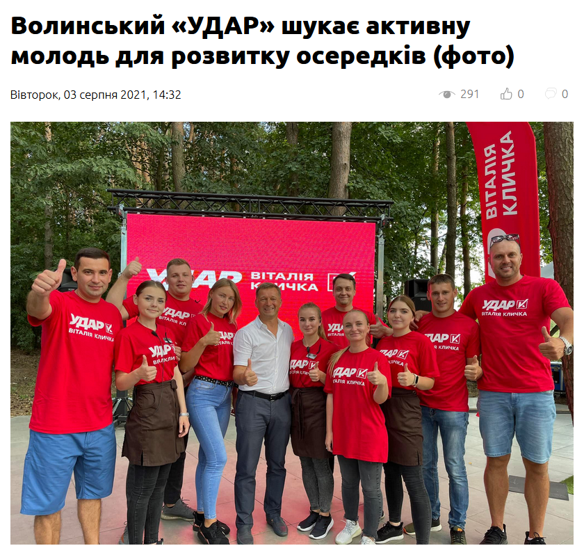 Видання «Конкурент» опублікувало приховану рекламу партії «Удар» на Волині. «Волинський «УДАР» шукає активну молодь для розвитку осередків (фото)». Фактично, це реклама партійної структури без серйозного інфорприводу, який міг би справді зацікавити читачів дізнатися більше про цю партію. У розміщенні такого анонсу зацікавлена лише сама партія, тому в цьому випадку медіа не працює в інтересах читачів.