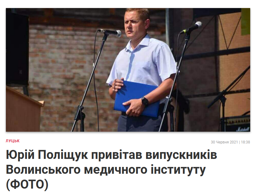 Наприклад, новина на сайті «ВолиньUА» про вітання випускників медичного інституту від першого заступника голови обласної ради Юрія Поліщука має ознаки замовності. Головними на такому дійстві є самі випускники, а не політики, натомість, у новині роблять значний акцент на персоні політика.