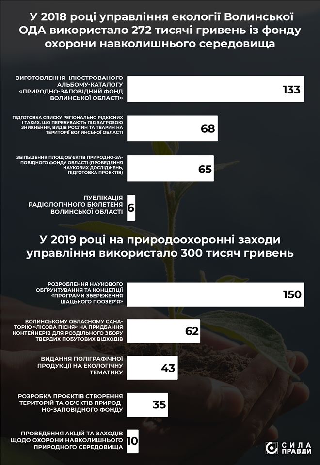 Впродовж двох останніх років управління екології Волинської ОДА використало на природоохоронні заходи понад пів мільйона гривень.