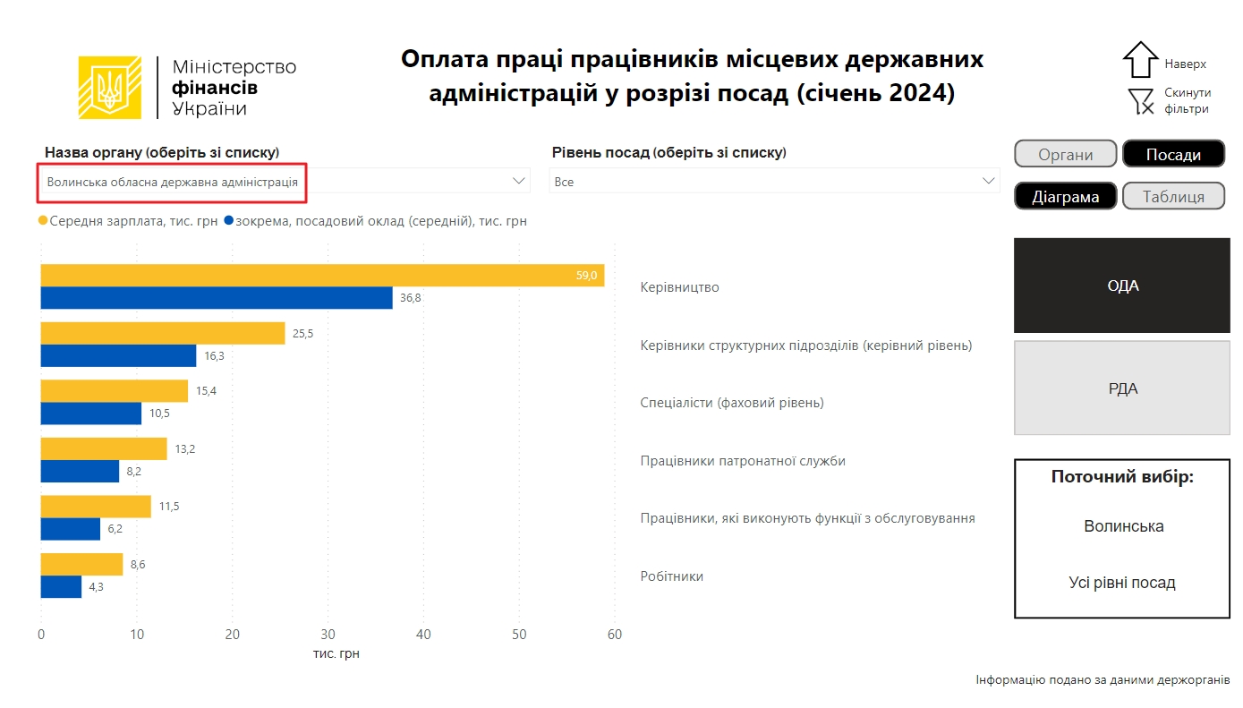 26 березня 2024-го Міністерство фінансів України опублікувало «дашборд», який дозволяє проаналізувати рівень заробітних плат у державних органах влади.