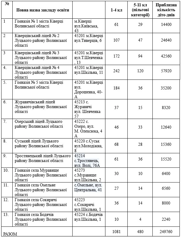 Гуманітарний відділ Ківерцівської міської ради оголосив закупівлю послуг для їдалень для закладів освіти громади з очікуваною вартістю 35,9 млн гривень. На тендер прийшло п’ять учасників.
