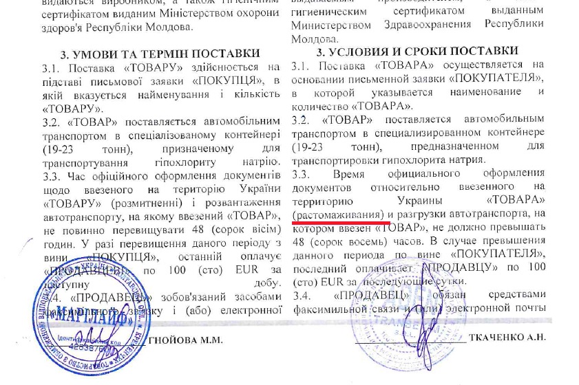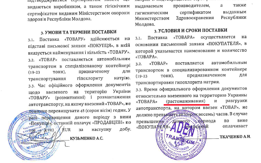 Така поведінка на тендерах викликає не тільки чимало запитань, але й має ознаки спільних зв’язків. До прикладу, обидва конкуренти у поданій на тендер «Луцькводоканалу» документації зазначили, що постачатимуть гіпохлорит натрію виробництва молдовської фірми «Aden-Transexim» і надали договори із цим підприємством, які дійсні до однакової дати – 31.12.2020 року.