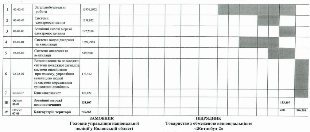 Нацполіція Волині протягом двох років ремонтує приміщення службового гуртожитку в Луцьку. Наприкінці травня 2023 року цей підряд на тендері отримала фірма «Житлобуд-2» з ціною 27,6 мільйона гривень. Пропозиції двох інших учасників торгів, ТОВ «Волиньекобуд» та «Бетон Брук Сервіс», були нижчими на понад мільйон, але їх відхилили через проблеми із документами.