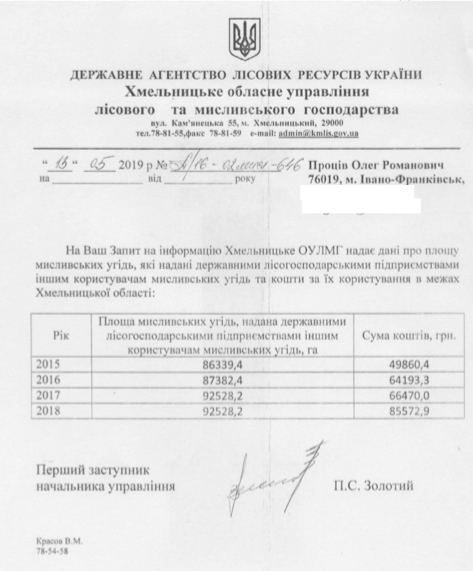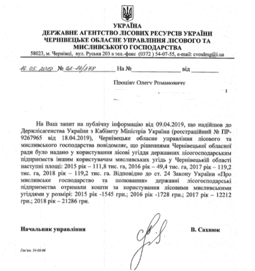 Чоловіка обурило те, що, наприклад, в Запорізькій, Хмельницькій, Чернігівській та Чернівецькій областях держлісгоспи стягують плату з інших суб’єктів господарювання за користування мисливськими угіддями. А на Волині посилаються на відсутність законодавчо врегульованого механізму одержання державними лісопідприємствами такої плати. Окрім того, тут покладають великі сподівання на те, що лише приватний користувач здатен подбати про збереження поголів’я, підгодівлю тварин і загалом нормальне функціонування галузі. Тому угіддя офіційно надають безплатно.
