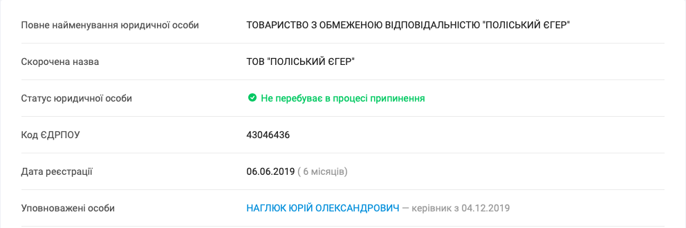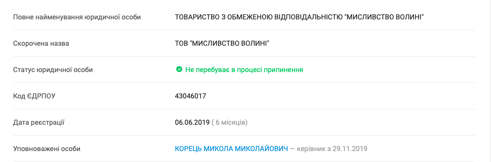 Нагадаємо, за даними аналітичної системи YouControl, ТОВ «Мисливство Волині» і ТОВ «Поліський єгер» були створені в один день 6 червня 2019-го року і зареєстровані за адресою: м. Луцьк, вул. Рівненська, 74.