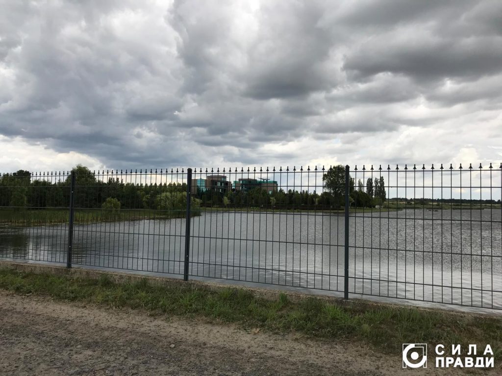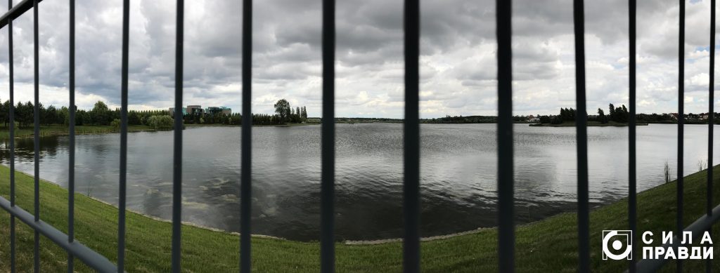 Сотні метрів паркану оснащеного системою відеоспостереження розділяють нас і водойму. Щоправда, з вулиці видно, що комусь пощастило більше і він, лишивши речі на березі, купається. Поруч чоловік в уніформі стриже траву газонокосаркою. Підходимо ближче до огорожі і питаємо, як можна потрапити всередину. Робітник скеровує до охоронців, каже, вони все пояснять.
