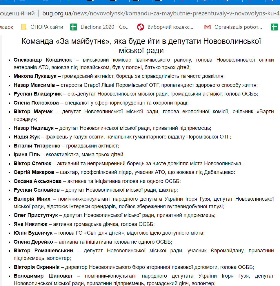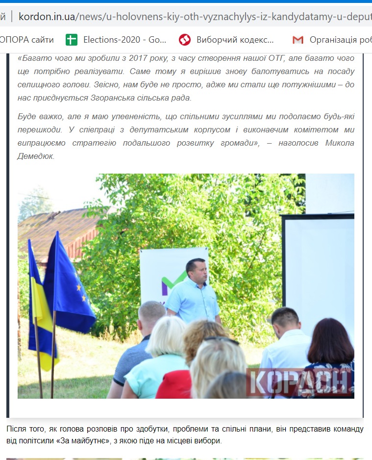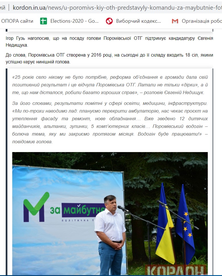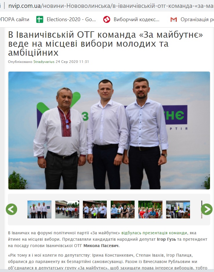 23 серпня видання опублікувало новину із представлення команди «За майбутнє» у Поромівській громаді. Тож тут повідомили, що за посаду голови ОТГ від партії змагатиметься Євгеній Недищук. Також тут розмістили перелік осіб, що складають його команду. Аналогічні новини розмістили також видання «Нововолинський інформаційний портал» та «БУГ».