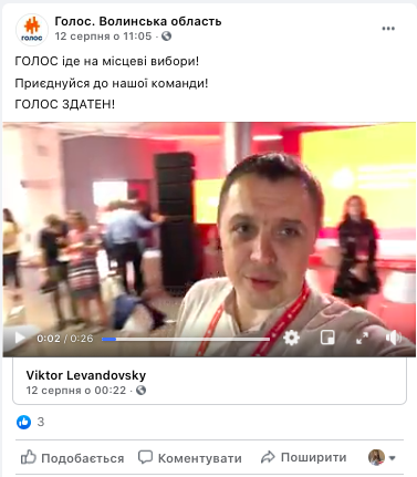 Також 7 серпня на Facebook-сторінці «Голос. Волинська область» з’явилося повідомлення про те, що партія іде на вибори у Нововолинську із посиланням на заяву Павла Медини. А 12 серпня з’явилося повідомлення, що партія йде на місцеві вибори. У прикріпленому ролику керівник «Голосу» на Волині Віктор Левандовський розповів про з’їзд партії та команду.