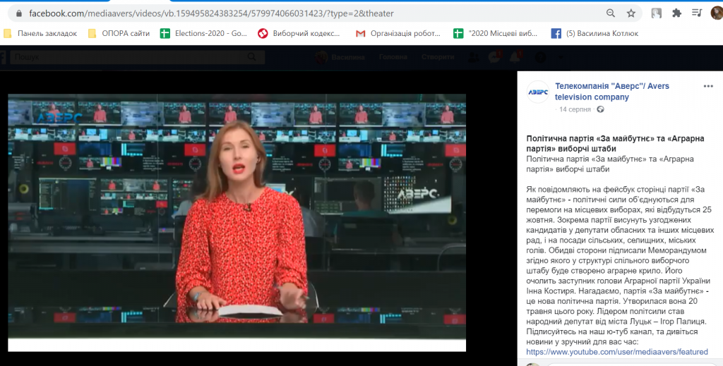14 серпня телеканал «Аверс» у своєму сюжеті повідомив про об’єднання штабів партій «За майбутнє» та Аграрної партії України. «Політичні сили об’єднуються для перемоги на місцевих виборах, які відбудуться 25 жовтня», – йдеться у сюжеті із посиланням на Facebook-сторінку партії «За майбутнє».
