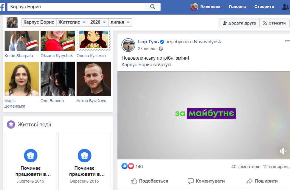 3 серпня на сайті видання «Під прицілом» з’явилася новина «Кандидат на міського голову Нововолинська розповів про себе (відео)». Публікацію зробили із посту Бориса Карпуса. Ролик починається із логотипу партії «За майбутнє», а далі потенційний кандидат розповідає факти зі своєї біографії. Також він зазначає, що є помічником нардепа Ігоря Гузя та що «разом ми змінюємо наш округ на краще». Публікації про Бориса Карпуса 3 серпня розмістили також «Нововолинський інформаційний портал», «Кордон», «БУГ».