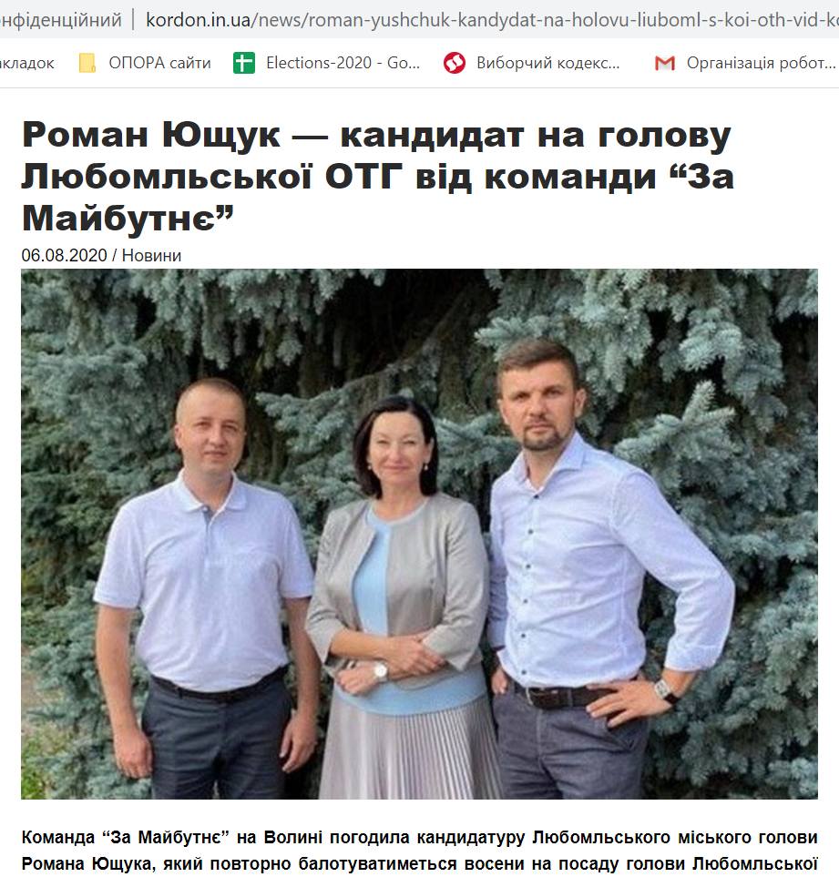 6 серпня видання «Кордон» із посиланням на пресслужбу Ігоря Гузя повідомило про бажання балотуватися на посаду голови Любомльської ОТГ Романа Ющука.