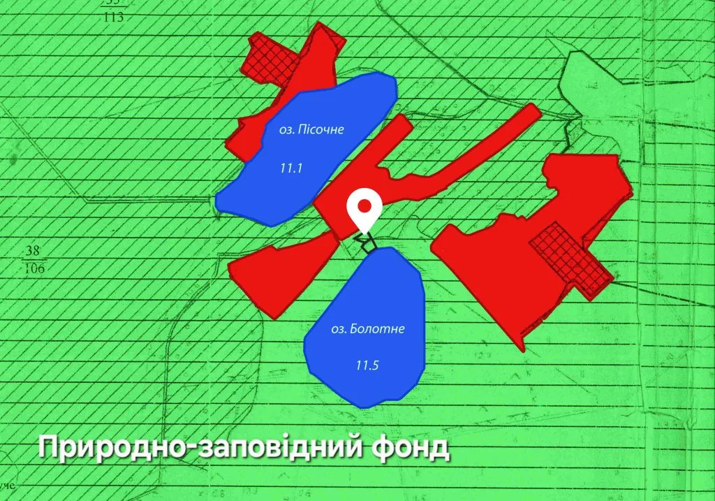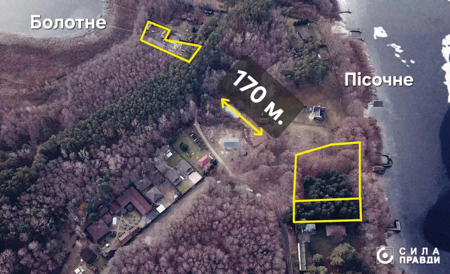 Варто також зазначити, що Руслан Роговський з 2022-го орендує ще дві земельні ділянки на березі озера Пісочне – фактично за 270 метрів від Болотного.