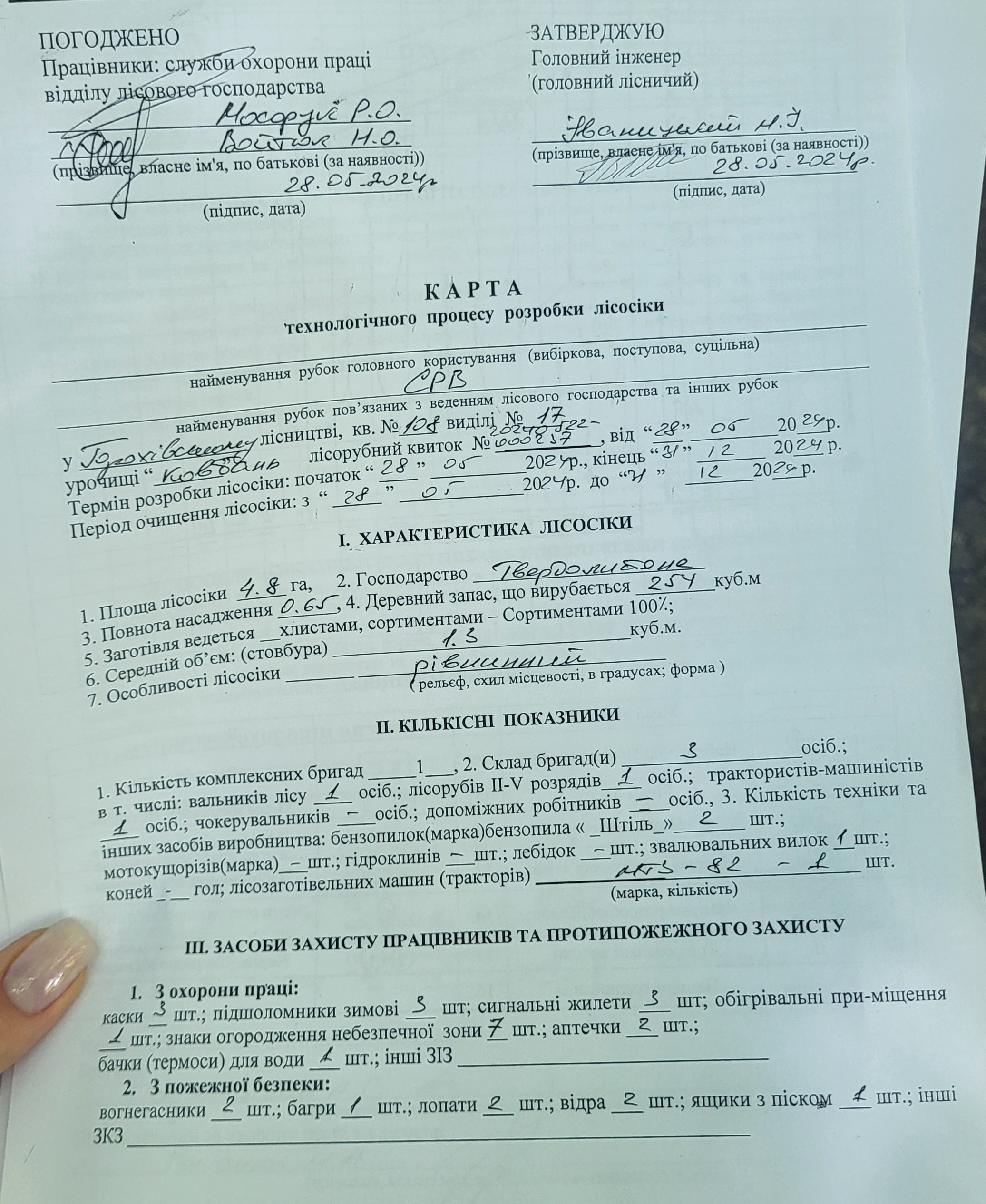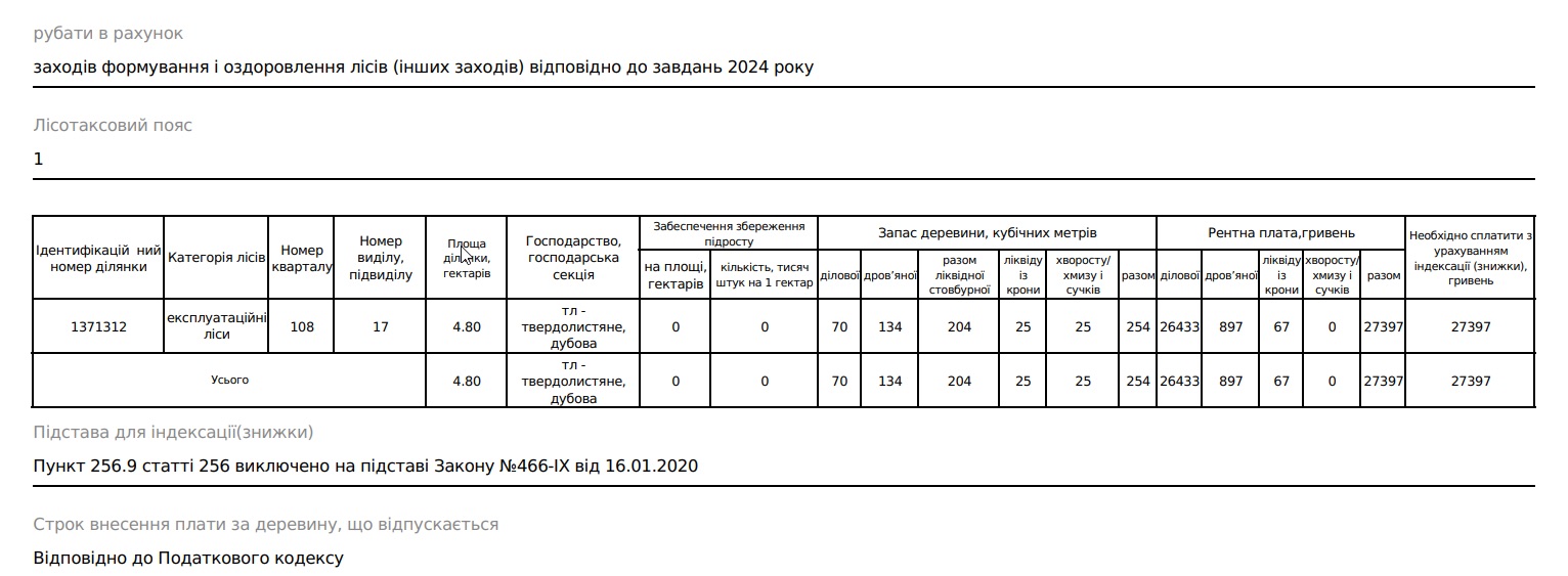 На основі акту лісопатологів лісівники склали перелік заходів для поліпшення санітарного стану лісу та інші документи. Зокрема, акт лісосіки й технологічну карту, де описано схему вирубки на ділянці. Ці документи знову ж таки підписав майстер лісу Павло Земляной, а також головний лісничий Микола Романюк.