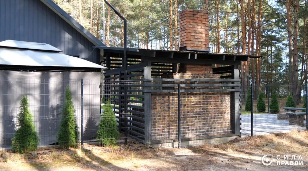 До лісового будинку підведені комунікації, на подвір’ї виклали бруківку, встановили ліхтарі, старлінк, змурували піч із мангалом та грубкою, висадили туї та засіяли газончик. Місцевий рибалка розповів, що за котеджем доглядає охоронець, який також годує сторожових псів на подвір’ї.