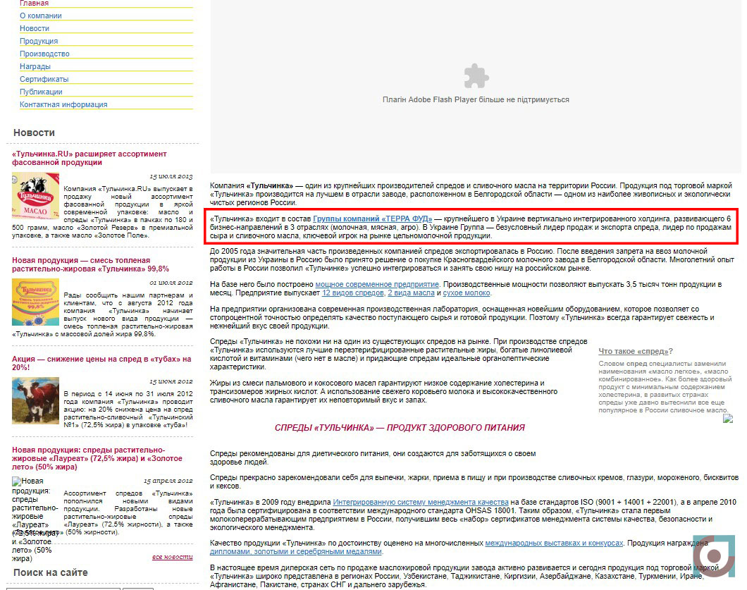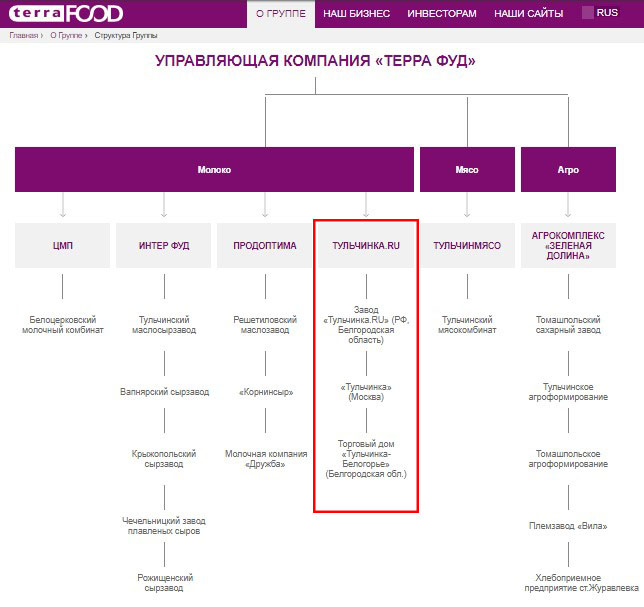 Схожа ситуація і з сайтом українського «Терра Фуд». Ось структура компанії у 2013 році: