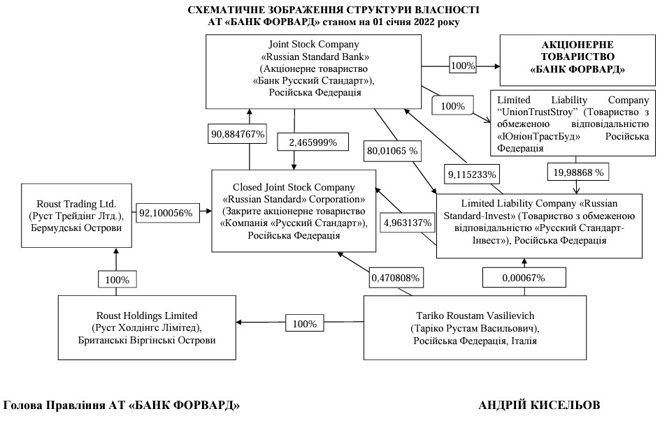 Станом на початок 2022 року «Форвард Банк» належав російському мільярдеру Рустаму Таріко.