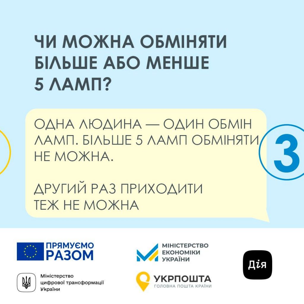 – Всього один раз. І кількість – до 5 лампочок. Якщо, наприклад, принесете лише дві, то вже другий раз донести не можна. Реєстрація у базі можлива лише раз.