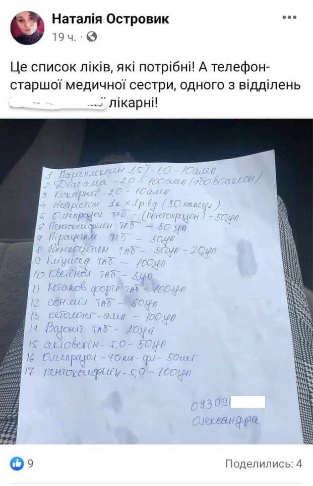 «Сила правди» зателефонувала за номером телефону, вказаним у списку ліків, що його оприлюднила волонтерка Наталія Островик. Медсестра Олександра відмовилась називати своє прізвище. Однак підтвердила, що список необхідних ліків – їхніх рук справа.