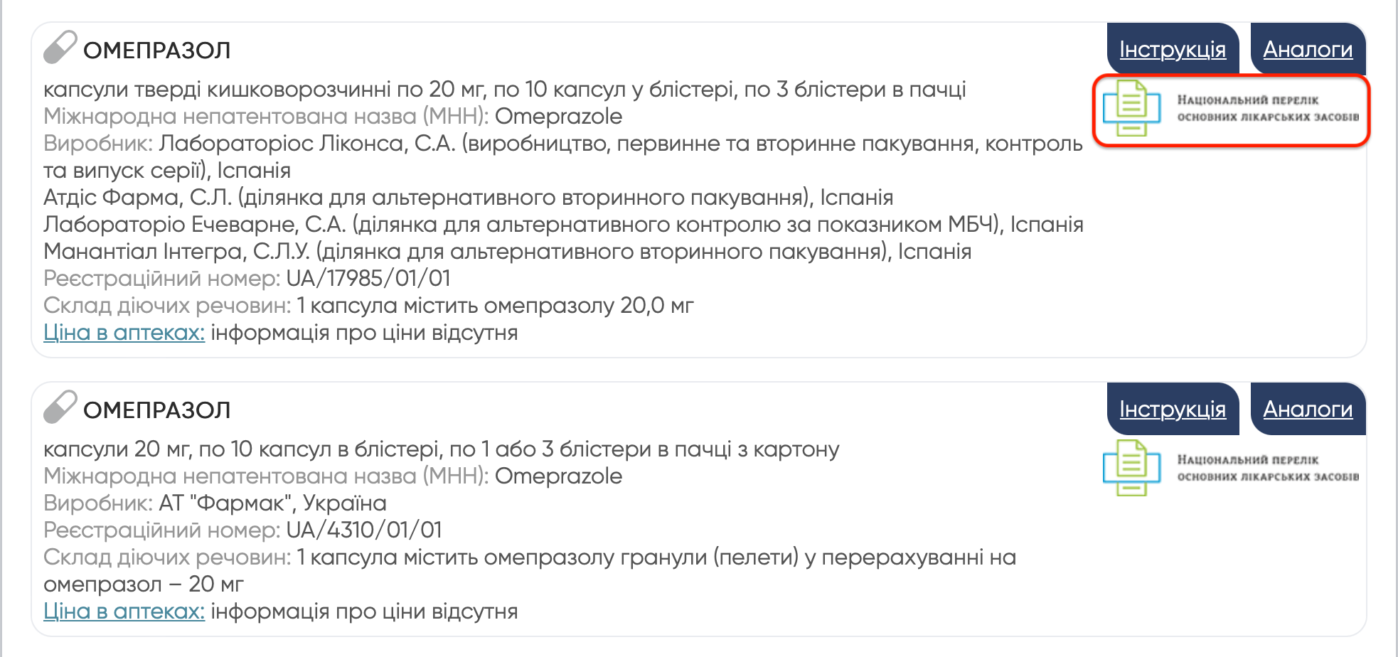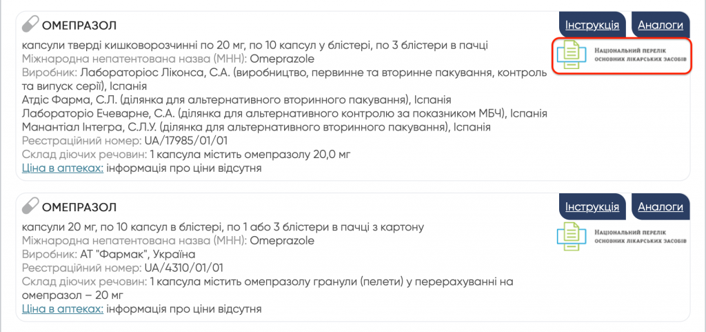 Перевірити наявність або ж відсутність виписаних лікарем медикаментів у Національному переліку можна за допомогою сервісу «Ліки Контроль». Досить вказати в графі пошуку назву препарату і натиснути пошук. Якщо ліки входять до переліку, з правого боку буде відповідна позначка. Її наявність гарантує вам право на безоплатне забезпечення препаратом у стаціонарі. Також за допомогою безплатного мобільного додатку «Ліки Контроль» можна перевіряти ліки й шукати аналоги.