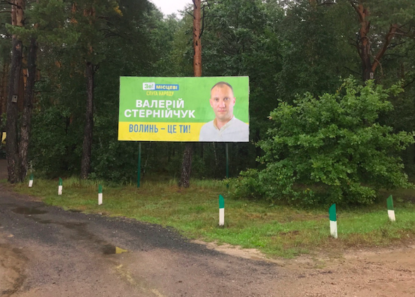 6 вересня поблизу міста Каменя-Каширського представником ОПОРИ виявлено білборд на користь потенційного кандидата, чинного народного депутата і лідера партії «Слуга народу» на Волині Валерія Стернійчука. Поряд із зображенням політика міститься надпис: «Зе! Місцеві. Слуга народу. Валерій Стернійчук. Волинь – це ти».
