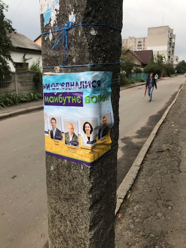 Також 6 вересня у місті Ковель виявили листівки в місцях, спеціально передбачених для розміщення агітації відповідно до розпорядження міського голови №174-р. Йдеться про листівки «Ми об’єдналися За майбутнє Волині» із зображеннями та іменами п’яти народних депутатів – Ігоря Палиці (очільник партії «За майбутнє»), Ірини Констанкевич (котра тут зазначена як голова волинського осередку партії), Ігоря Гузя, Степана Івахіва та Вячеслава Рубльова.