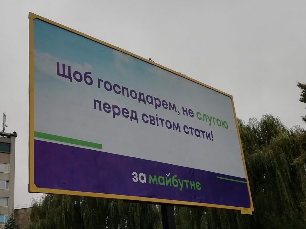 Також у Луцьку і в Маневичах зафіксували появу нових рекламних матеріалів на користь партії «За майбутнє». На них міститься гасло «Щоб господарем, не слугою перед світом стати!».