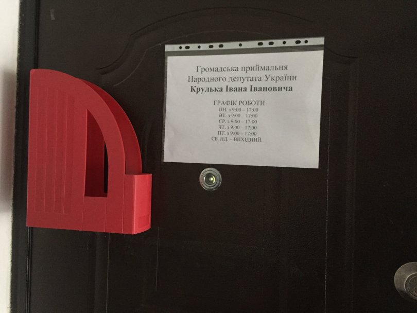 Вперше «поцілували замок», а також почули від сусідів, що прийом тут зазвичай веде депутат Волинської обласної ради від партії «Батьківщина» Василь Столяр, який не числиться серед помічників Івана Крулька. Іншим разом вдалося застати господиню – офіс-менеджера Тетяну Карпюк. На запитання, як поспілкуватися з Іваном Крульком вона порадила звернутися до обласного осередку партії у Луцьку.