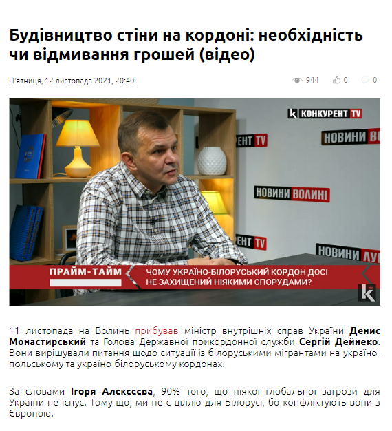 Проте медіа «Конкурент TV» записало інтерв’ю щодо ситуації на україно-білоруських кордонах із громадським активістом Ігорем Алєксєєвим, який не є експертом у питаннях оборони.