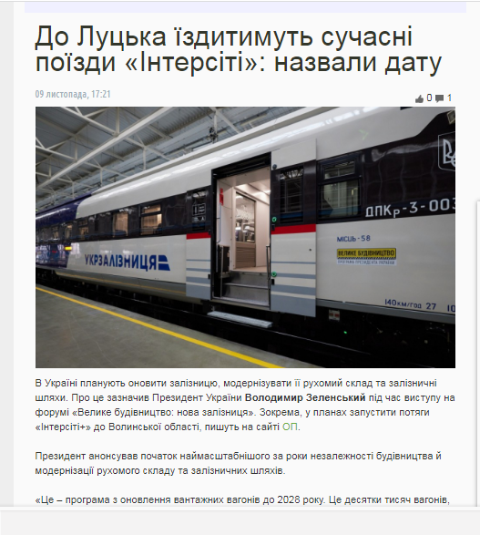 На сайті «Волинь24» є новина із назвою «До Луцька їздитимуть сучасні поїзди «Інтерсіті»: назвали дату». Ніби нічого надзвичайного у тому, що нарешті сучасні потяги їздитимуть до Луцька, проте у тексті називається тільки 2024 рік, як дата, до якої це має статися, але конкретної дати немає.