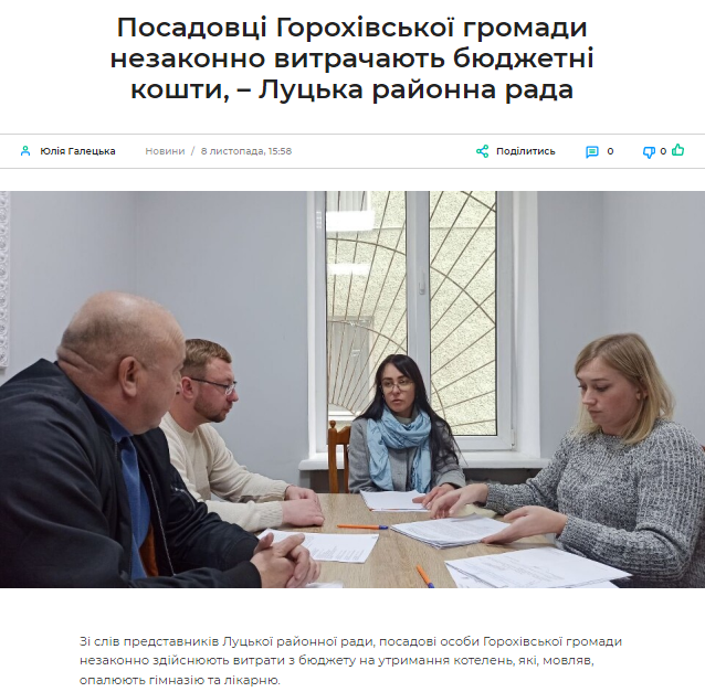 Порушення професійних стандартів можна побачити на сайті видання «Перший» та «Волинь UA», коли поширили прес-реліз Луцької райради без додаткових коментарів зі сторони Горохівської міської ради, щодо якої публікують серйозні звинувачення. Заголовки новин: «Посадовці Горохівської громади незаконно витрачають бюджетні кошти, – Луцька районна рада», «Кримінал у Горохові: посадовці «розбазарюють» бюджетні кошти».