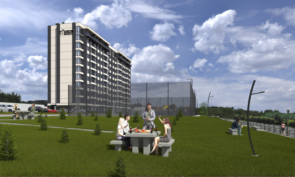 Поки на території, площею близько 1,04 гектара тривали роботи, на сайті житлового комплексу майбутніх власників нерухомості зустрічали словами «ЖК «River House» – світ абсолютної надійності…», обіцяли комфортне проживання у просторих квартирах, зручне розташування та неймовірні краєвиди на річку Стир.